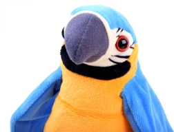 En sød plysspapegøje med optage- og afspilningsfunktion underholder både børn og voksne. Når den tændes, “lytter” den til dig og gentager alt på en sjov måde med en klar stemme. Takket være det bløde, behagelige materiale og de livlige farver er den perfekt til leg, kram og som en original dekoration.