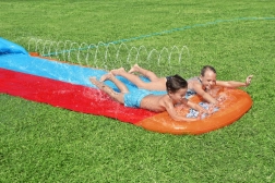 Rutschebanen fra Bestway er et fremragende valg til opfriskende sommermoro i haven. Det er nok at brede den ud, fastgøre den til jorden og tilslutte haveslangen. Takket være solide fastgørelser forbliver rutschebanen på sin plads, og indbyggede sprinklere sikrer en konstant vandstrøm for maksimal glide.