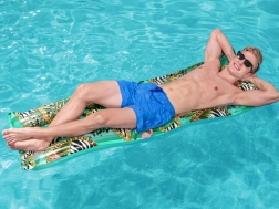 Denne stilfulde oppustelige madras med tropisk print er ideel til afslapning i din pool og på ferien. Takket være det stærke PVC-materiale og den gennemtænkte konstruktion med flere luftkamre tilbyder den fremragende opdrift, komfort og lang holdbarhed.