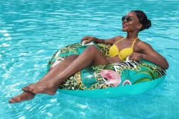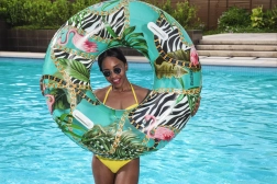 Nyd sommeren med en komfortabel badering fra BESTWAY med en diameter på 114 cm. Holdbart PVC-materiale, to solide håndtag for sikkert greb og et stilfuldt palmemønster vil glæde teenagere fra 12 år og voksne. Ideel til pool, sø og hav, let at blæse op og tømme, og der medfølger en reparationslap.