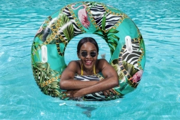 BESTWAY baderingen er et godt valg til afslapning på vandet og som hjælp ved svømmetræning. Størrelsen på 114 cm sikrer stabilitet og komfort, mens skridsikre håndtag gør det nemmere at komme i og manøvrere. Palmestykket giver dit sommerlook et frisk touch, og du bliver ikke overset på vandet.