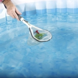 Den beskyttende gummikant og det finmaskede net opsamler effektivt blade, pollen og småt snavs uden at beskadige spa- eller poolvægge. Også velegnet til svært tilgængelige steder.