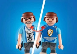 Den unikke figur med drejeligt hoved og to udtryk gør det muligt på et øjeblik at forvandle en politibetjent til en skurk – ideel til at fortælle dine egne historier. Sættet understøtter kreativitet, rolleleg og udvikling af børns fantasi.