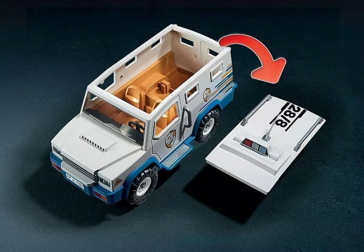 Fejr 50 år med PLAYMOBIL med en specialudgave af det populære politisæt. Pengetransportør, fræk svindler og hurtig motorcykel skaber spændende scener fulde af action. Takket være det aftagelige tag og de åbne bagdøre er legen flydende og dynamisk.