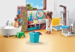 Nyd den afslappede atmosfære i et stilfuldt badeværelse. Sættet inkluderer fritstående badekar, brusekabine, håndvask og en række badeværelsesudstyr. Ideel til udvidelse af det nye hus med vinterhave. Mulighed for at kombinere med andre sæt i PLAYMOBIL Hus-serien.