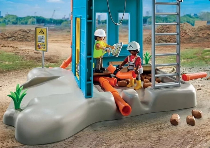 Sæt gang i den store byggeplads med PLAYMOBIL legesættet! Denne detaljerede byggeplads byder på en bevægelig kran, 3 figurer og masser af realistisk tilbehør til kreativ leg. Børn udvikler fantasi, finmotorik og rollelegevner, mens de “arbejder” sikkert på byggepladsen.