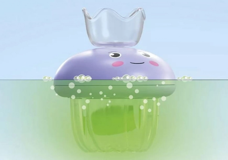 Denne vandmand har et sikkert kammer til badetabletter og giver smukke bobleeffekter.