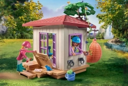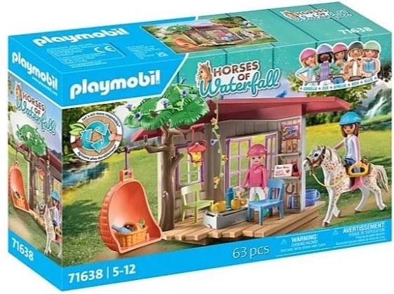 Tag på rideeventyr med den hemmelige PLAYMOBIL Hesteklubben! Bag et lille vandfald inde i skoven har ridevennerne fra Waterfall bygget en hyggelig klubhule med en behagelig gynge og et praktisk hemmeligt gemmested! Det ideelle sted at slappe af efter en lang ridetur eller til klubbens hemmelige møder. Isabella og Amelia tager altid en kop varm chokolade og lækre pretzels med. Den venlige hest lytter til venners fnisen og fuglenes kvidren.