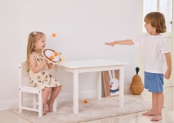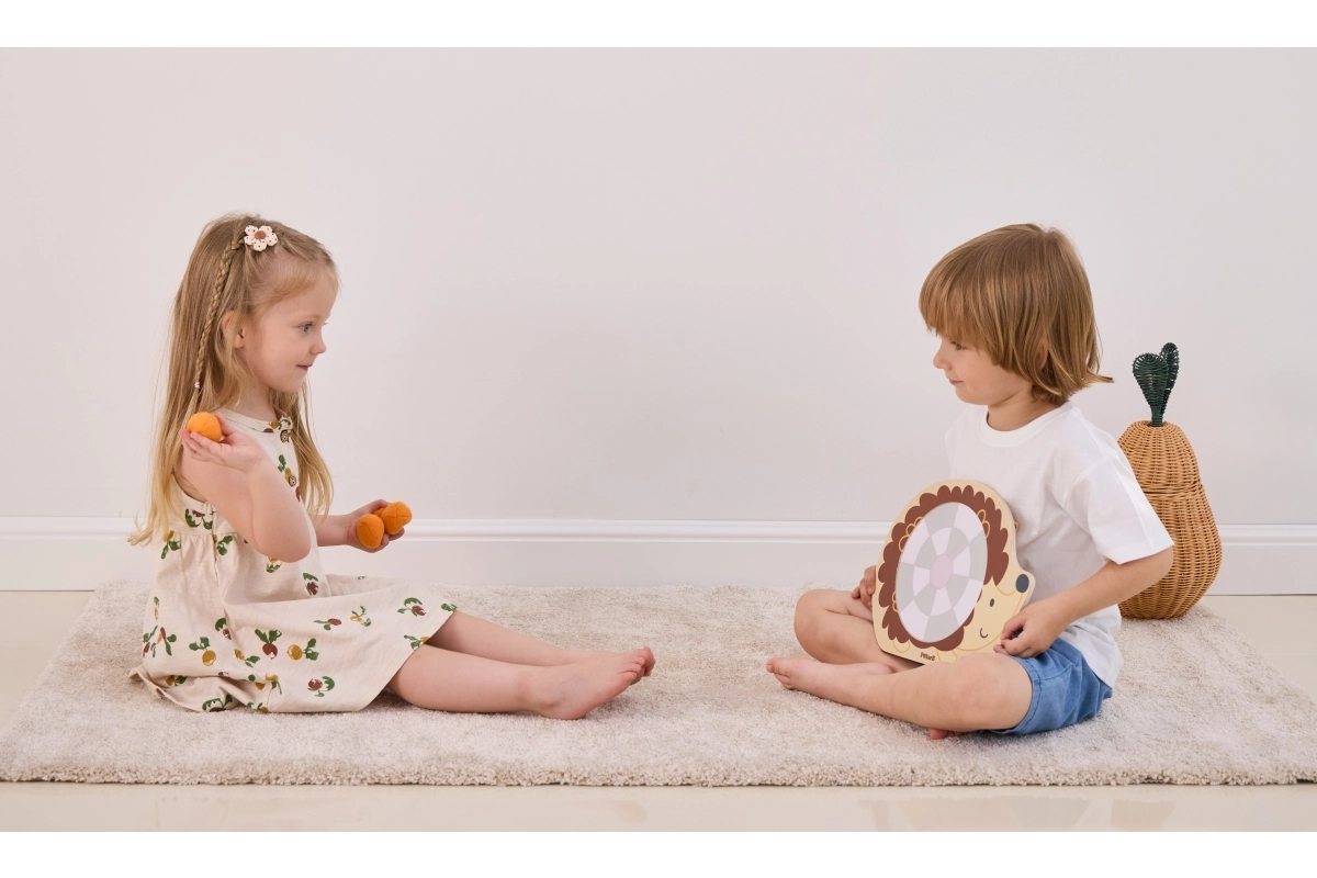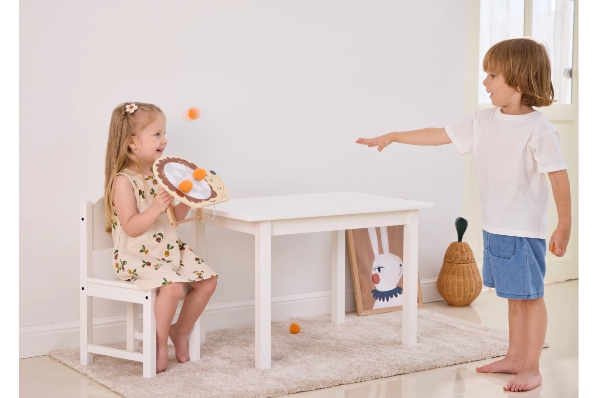 Dette trælegetøj er designet til børn fra 3 år og giver fremragende underholdning gennem målrettet kast af bolde mod en skive. Dermed kan børn forbedre deres færdigheder inden for målretning. Derudover er legetøjet nemt at samle og skille ad, hvilket gør det let at transportere og vedligeholde.