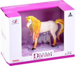 Oplev charmen ved det mytiske væsen, som er et symbol på magi, drømme og eventyr. Denne plastfigur af en enhjørning har en elegant positur, hvid pels og et markant magisk horn, hvilket gør den til et flot indslag på børneværelset og i den daglige leg.