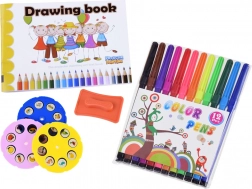 Inkluderer 3 sæt dias med dyr, frugt og køretøjer, 12 farvede tuscher, notesblok, underlag og svamp – til mange timers kreativ leg.
