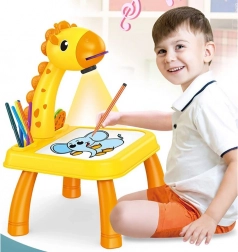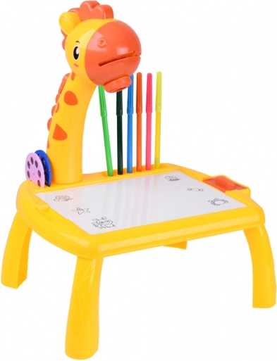 Denne børneprojektor i giraf-form projicerer billeder på tegnefladen, så børn nemt kan tegne dem af og lære de rette strøg. Det lette og stabile bord kan bruges med ben som et mini-skrivebord eller uden ben direkte på en bordplade.