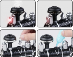 Modellen er udstyret med en fjernbetjening, der giver mulighed for at styre lokomotivet og dets funktioner på afstand.