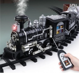En storslået togsæt med røg- og lyseffekter, styret med fjernbetjening, vil fortrylle enhver lille lokomotivfører. Dette detaljerede sæt er ideelt til både leg og samlere.