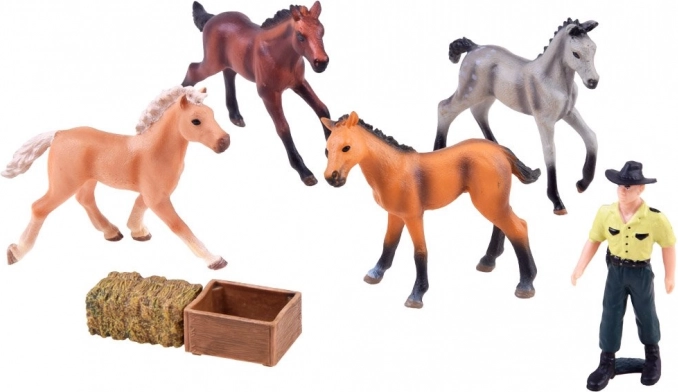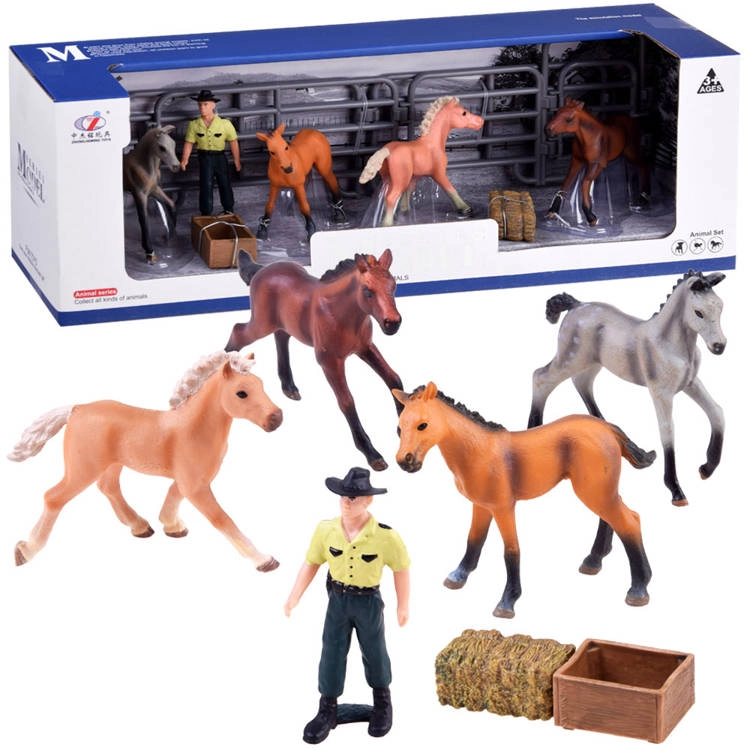 Oplev landlivets charme med et sæt realistisk malede hestefigurer og en landmand. Sættet styrker børns fantasi, giver kreativ leg, lærende elementer og byder på høj kvalitet med detaljerede tilbehør til indhegningen.