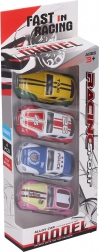 Dette seje sæt indeholder fire robuste og detaljerede racerbiler, som blot skal trækkes tilbage og slippes. Takket være den kompakte størrelse på 7 cm er de perfekte til løb derhjemme, forhindringsbaner og til at tage med på farten. Metaludførelse sikrer længere holdbarhed og sjov uden kompromiser.