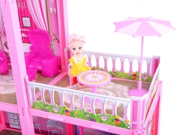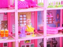 Det store lyserøde dukkehus er designet med øje for detalje og høj kvalitet af udførelse, hvilket sikrer lang levetid og sikkerhed under leg. Dets lyserøde og attraktive design appellerer især til små piger, der kan skabe deres egen verden fuld af eventyr.