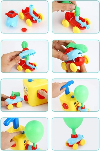 Sættet gør det muligt for børn at puste ballonen op med få tryk og se, hvordan luftens energi sætter bilen eller andre tilbehør i gang. På en legende måde lærer de grundlæggende fysik og mekanik. Det farverige design i gul og blå indbyder til gentagen leg, og den solide kvalitet med CE-certificering giver en tryg følelse af sikker underholdning.