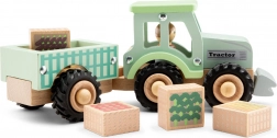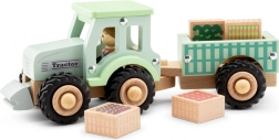 Dette smukke sæt indeholder en traktor i blid grøn farve, et aftageligt lad og fire træklodser med tryk af tomater, aubergine, gulerod og broccoli. Børn kan laste, transportere og losse grøntsager, træne hånd-øje-koordination og udforske landmandslivet.