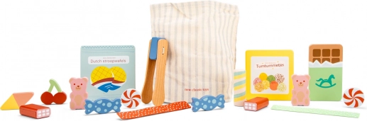 Sødt trælegetøjssæt med slik til børn fra 3 år, der giver sikker og kreativ leg. Indeholder 16 godter, en lille tang og en stoftaske. Understøtter finmotorik, fantasi og sociale færdigheder. Fremstillet af 100 % FSC-certificeret træ for lang holdbarhed og hensyn til naturen.