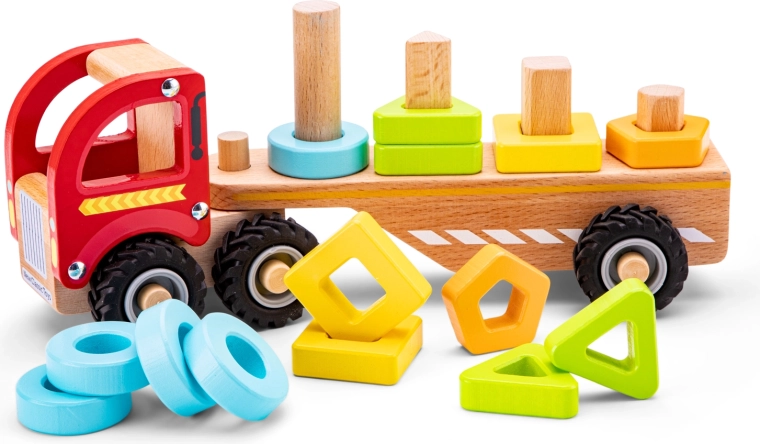 Træsorte-lastbil er det ideelle legetøj til børn fra 18 måneder, som kombinerer populære børneaktiviteter som sortering og stabling med kærligheden til biler.