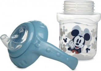 Takket være anti-lækagesystemet minimeres risikoen for spild, hvilket er praktisk både hjemme og på farten. Den antikolik-ventil hjælper med at reducere risikoen for kolik – under drikning lader ventilen luft strømme ind i den bageste del af flasken, hvilket forhindrer undertryk og holder luft væk fra barnets mave. Koppen er lavet af sikre materialer uden BPA og overholder de gældende regler. Det legende design giver sjov og motivation ved hver slurk.