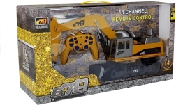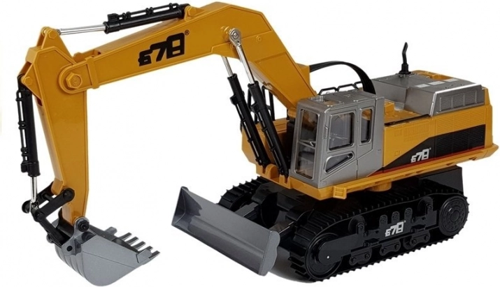 Der medfølger 2.4G fjernbetjening til kørsel frem/tilbage, højre/venstre, styring af armen og rotation af kabinen. Legetøjet er fremstillet af testet kvalitetsplast, opfylder CE og EN 71 og leveres i gaveæske med vindue. For at tage den i brug skal du blot indsætte 2× AA-batterier i controlleren (medfølger ikke) og tilslutte de medfølgende akkumulatorer i graveren.