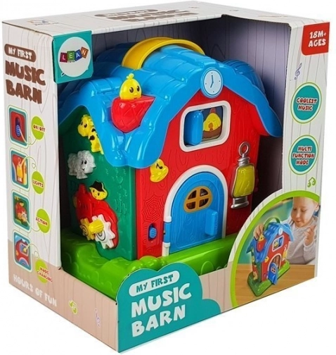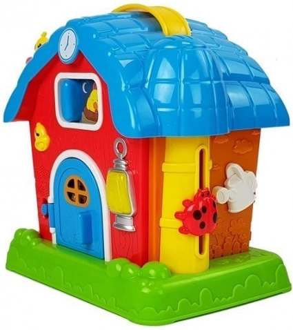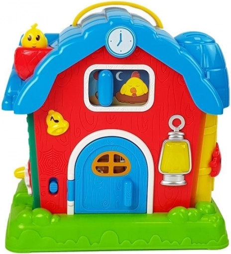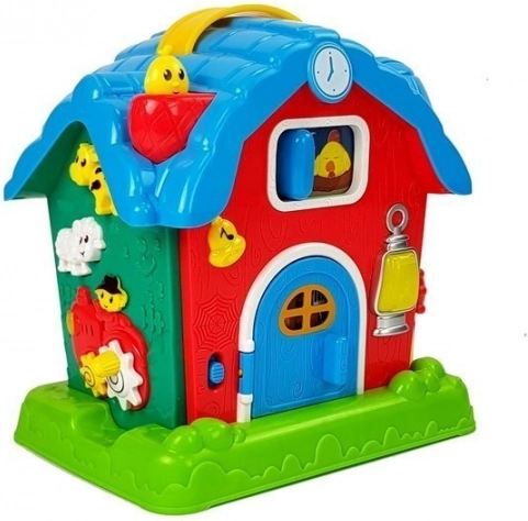 Denne farverige, interaktive lade bringer livet på gården tættere på børn og introducerer dem legende til grundlæggende engelske gloser. Når man trykker på knapperne eller åbner dørene, høres realistiske dyrelyde (ko, får m.fl.), klokken aktiveres, og det forreste lys tændes. På skorstenen sidder en lille baby, som ved tryk fortæller en kort historie, og der er også en høne, som hjælper med både opvågning og sengetid.