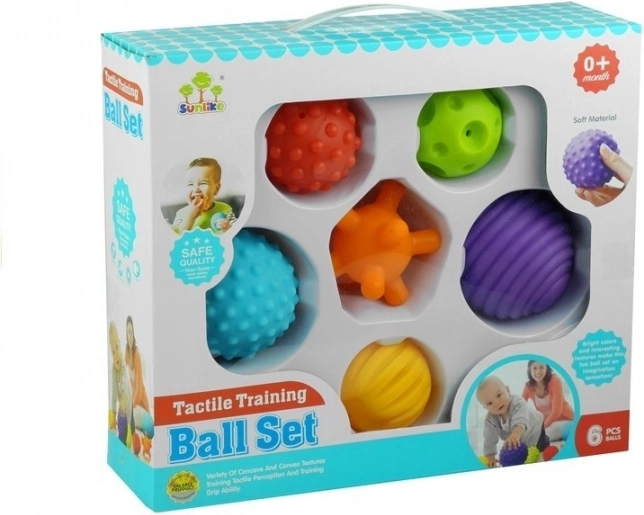 Dette farverige sæt med seks sensoriske bolde er ideelt til de første opdagelser af berøring. Hver bold har en anden tekstur – riller, knopper eller fordybninger – som blidt masserer håndflader og fingre og dermed understøtter finmotorik og hånd–øje-koordination. Forskellige farver og diametre motiverer børn til aktiv leg, sortering og læring.