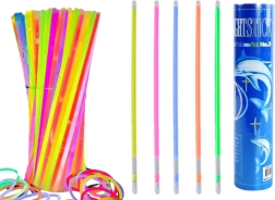 .Sæt med 100 farverige fluorescerende armbånd. Armbåndene lyser i mørket og kan bruges som pynt eller armbånd.