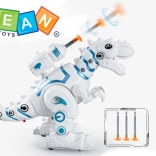 Robotdinosauren bevæger sig selvstændigt fremad, brøler realistisk, og dens LED-belysning i munden simulerer en flammesprøjtende effekt, hvilket giver legen dramatik og realisme. Den indbyggede pileskyder gør det muligt at skyde – indsæt blot en pil, tryk på opladningsknappen, og dinosauren affyrer. Yderligere lydeffekter beriger legen og gør den endnu mere fængende.