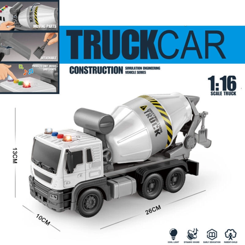 Bag på køretøjet findes en hvid, bevægelig, roterende tromle, udstyret med en drejelig rende. Den sættes i bevægelse med en knap, placeret på den forreste side. Renden er bevægelig og kan manøvreres til højre eller venstre, og bagpå hænger en lille grå skovl, så du nemt kan gå i gang med arbejdet på legetøjsbyggepladsen. Legetøjet er lavet i en meget realistisk stil, med klistermærker karakteristiske for denne type køretøjer og en række efterlignede vigtige detaljer. Køretøjet er i skala 1:16.