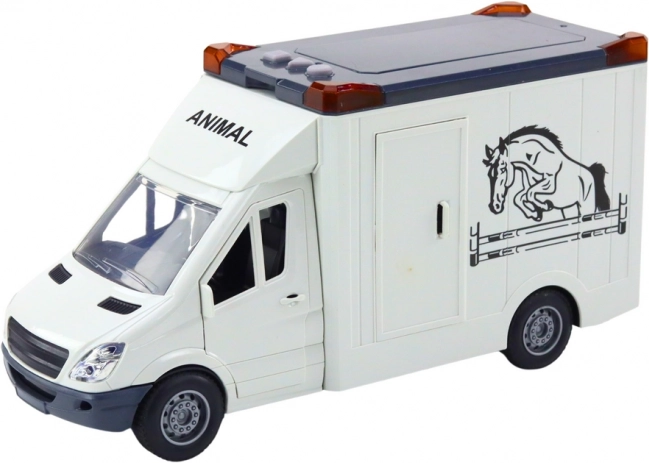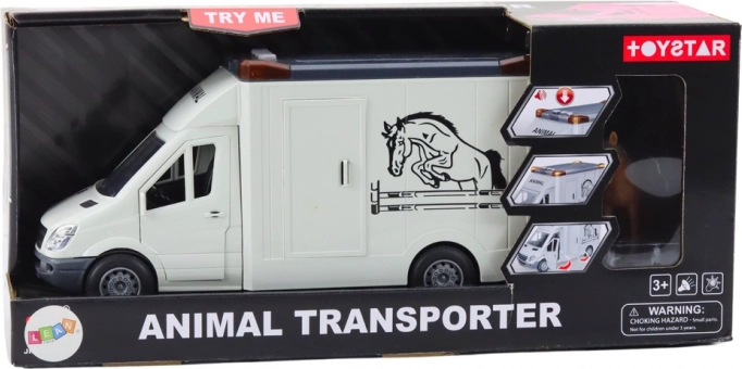 Hestetransporter med åbne døre og lys- og lydeffekter, hvid