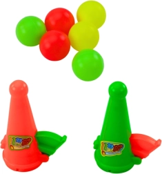 Nyd det enkle og fængende “skyd og grib”. Én spiller affyrer bolden og forsøger at gribe den igen med kurven, eller spil to sammen og send bolden frem og tilbage. De ergonomiske kurve er nemme at holde selv for mindre børn, og de lette bolde er lette at skyde af og gribe.