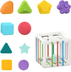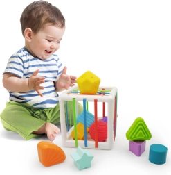 ✅ Multifunktionalitet: Legetøjet fungerer både som sorteringsboks og rangle. Børn kan ryste terningen, som frembringer behagelige lyde og yderligere stimulerer deres sanser.