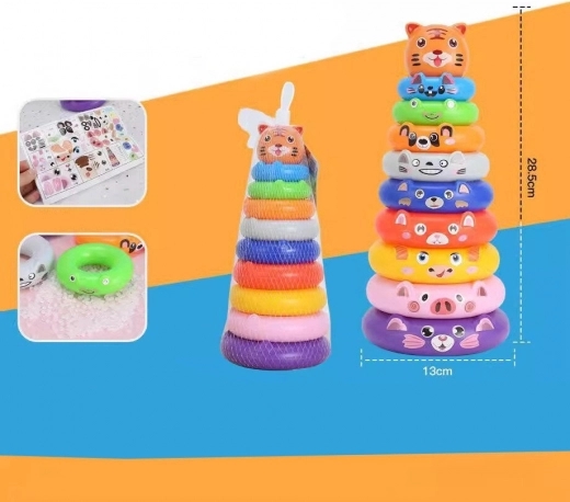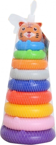 Farverig stabelpyramide med ringe og dyremærkater tiger