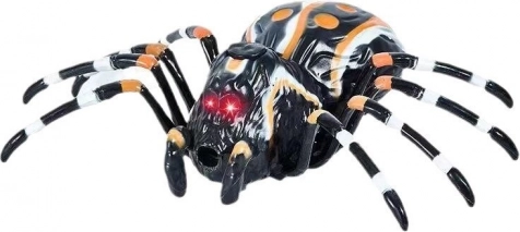 Denne sorte RC-tarantel efterligner troværdigt en rigtig edderkop – fra farverne til overfladen, som minder om hud og fin behåring. Når den tændes med ON/OFF-knappen, kører den jævnt takket være skjulte hjul og kan hurtigt dreje om sin egen akse.