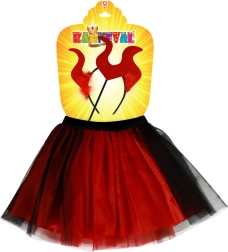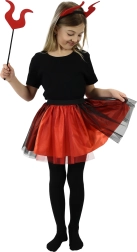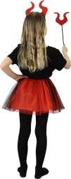 Kostumet skiller sig ud med sit kontrastfyldte rød-sorte farveskema, der fanger opmærksomhed og tilføjer magi til barnlig fantasi.