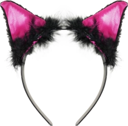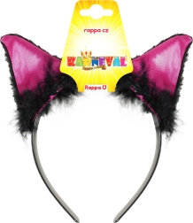 Karneval pandebånd med katteører i pink-sort farve og fjer er det ideelle tilbehør til enhver kattemaske.