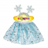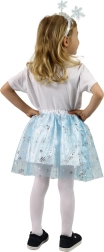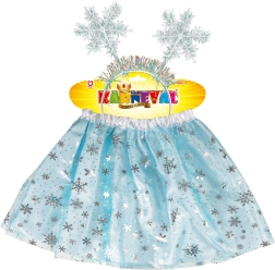 Blå nederdel med glitrende snefnug og satinlinning bringer vintermagi.