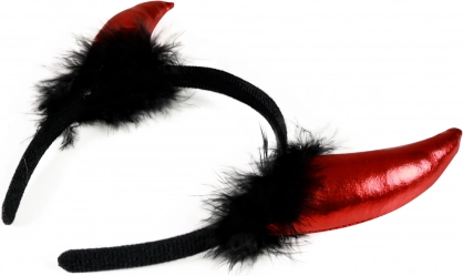 Djævlehorn på hårbøjle pyntet med fint fjer fuldender dit helvedeskostume! Disse fantastiske små horn forvandler dig til en yndefuld djævelinde eller djævel!
