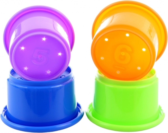 Fire kopper med tal og huller er ideelle til at bygge tårne, lære at tælle og lege med vand. Træner greb, logik og koordination.