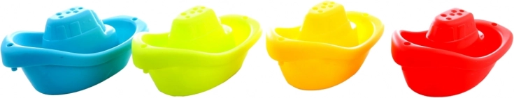 Fire flydende både i klare farver gør badet sjovere. Åbningerne gør det muligt at fylde og hælde vand, hvilket styrker koordinationen og nysgerrige eksperimenter.