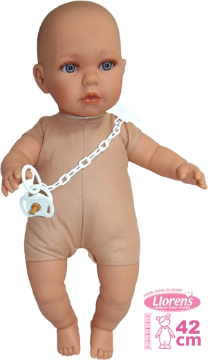 Dukken er håndlavet i Spanien, og dens bløde stofkrop giver en behagelig følelse under leg. Dukken kan leges som både pige og dreng takket være muligheden for at tilkøbe tøj fra Llorens i størrelsen 42 cm.