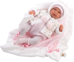 Realistisk babydukke med lyde og blødt krop 44 cm