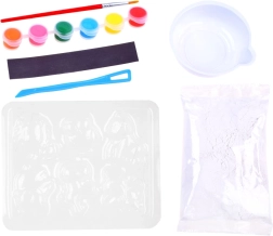 Børnene forbereder selv støbningen og dekorerer den derefter, som de ønsker. Sættet gør det muligt at lave op til 6 forskellige magneter.