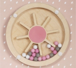 - Øverste del: Indeholder en bane med bevægelige kugler, der træner barnets præcision og koncentration.