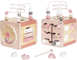 Multiklods træ tilbyder en række attraktive aktiviteter, der helt sikkert vil fange og glæde barnet. Hvert element er omhyggeligt designet til let at blive grebet og håndteret af små børn. Den stærke trækonstruktion sikrer langvarig holdbarhed, mens den blide pastelgrafik stimulerer fantasi og koncentration. De bevægelige elementer på klodsen udvikler barnets manuelle færdigheder og fingerfærdighed.