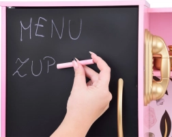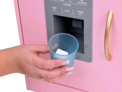 Køleskabet har en sort tavle til kridt, ideel til indkøbslister eller opskrifter. Derudover indeholder det en isterningmaskine for realistisk leg.