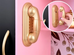 • En telefon hængt på køleskabet giver retrocharme og sjove lege muligheder.